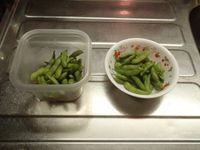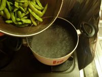 2, Boil a frying for Edamame, 150g (150cc), half weight from Edamame.