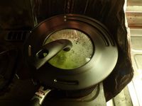 12, Open to sieve basket, and cooling with paper fan, it for make good color. but possible if not use paper fan.